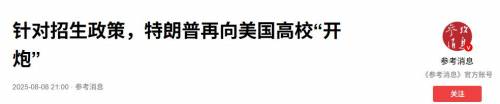 8月7日,特朗普命令美国高校提交更多招生程序数据,意图查明这些高校是否仍在采取已被禁止的平权措施。