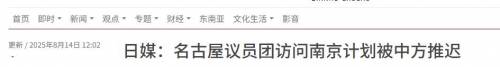 就在中方约见日本外交官并表达严重关切之后,中方又将日本名古屋市议员率团访问友好城市南京的计划延期,这意味着该代表团想要转交给南京方面的,由名古屋市长广泽一郎写的亲笔信,也直接被拒收了。