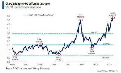 5. 第三个,美股泡沫。现在“美国经济好”的印象,从增长率上看不出来,比中国差多了。但是,全球盯着美股,这占了一半以上的印象分。美股肯定是在凭一口气硬撑着了,图三,标普500的“市净率”历史新高,超过了2000年代互联网泡沫的高峰期。还有一堆泡沫指标,大家都很好奇,美股泡沫是永不破,还是继续涨大再破,还是不久后就破。