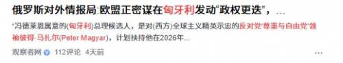该机构披露,欧盟委员会主席冯德莱恩正推动一项代号为“布达佩斯方案”的政治工程,目标是在2026年春季前让匈牙利总理欧尔班下台。