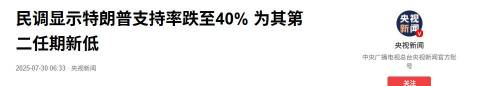 据路透社最新的民调显示,特朗普的支持率跌至40%,创下他第二次执政以来的新低。