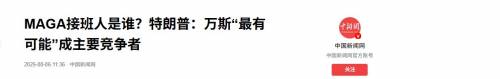 特朗普在8月5日接受在白宫答记者问时时,他表示万斯很有可能会成为“MAGA”的接班人,“公平地说,他毕竟是副总统”。
