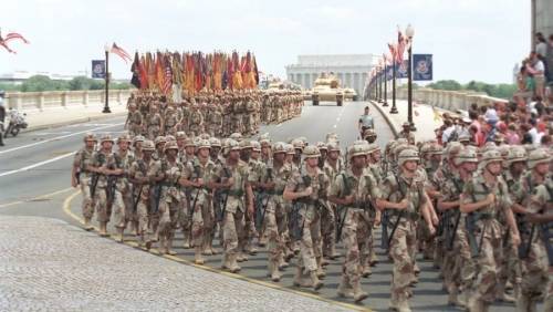 其一,规模小,仅动员了7000名美军士兵,和120台战车、50架现代军机和若干二战时期的战机,是历次美国阅兵中规模最小的一次。