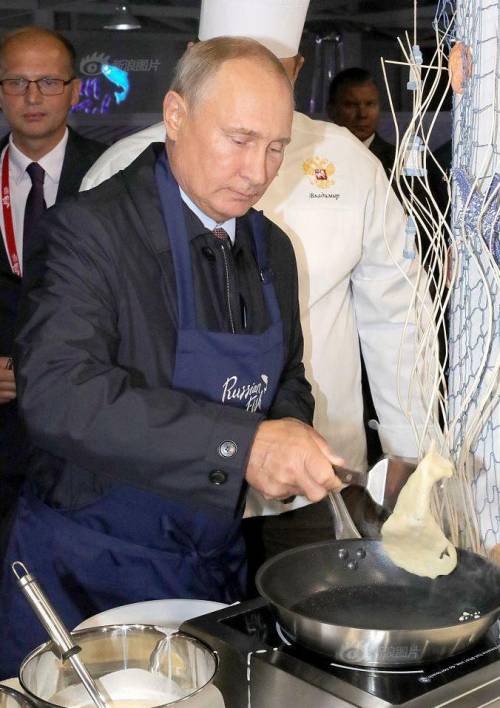 普京在中国确实很放松,自己尝试包饺子吃,摊煎饼吃。参观哈尔滨工业大学期间,还夸中国的烤鸭好吃,因为没忍住吃了两块。