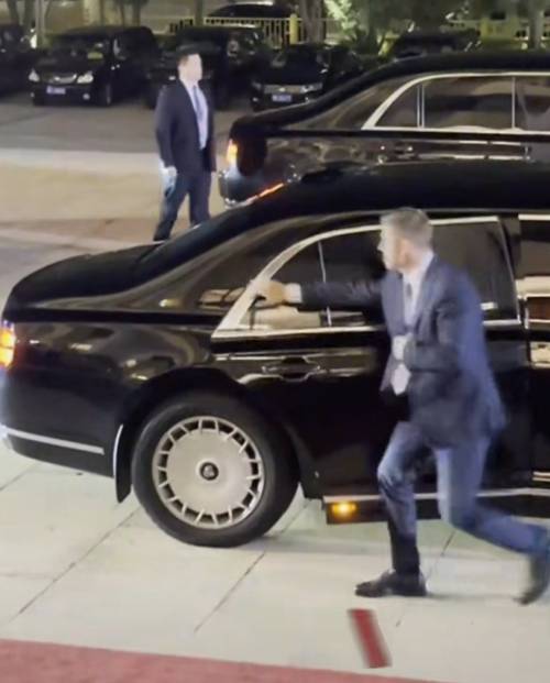 普京还被拍到主动推车门下车的照片,这在其他国家基本是不太可能出现的,一般都是由保镖开门,随时观察四周,然后示意总统下车。