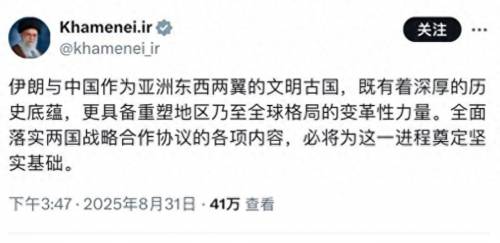 8月31日,天津。佩泽希齐扬的专机刚抵达天津,伊朗掌门人哈梅内伊就在社交平台上发布了一条用中文写的声明。