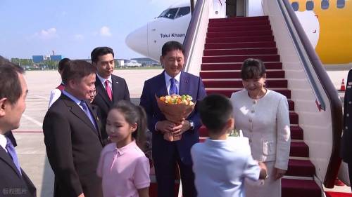图| 蒙古国总统呼日勒苏赫乘机抵达天津