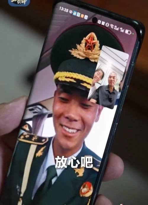 张威在升旗仪式结束后,第一时间将好消息告诉自己父母,跟自己的父母视频通话,视频里张威开心的像个孩子。