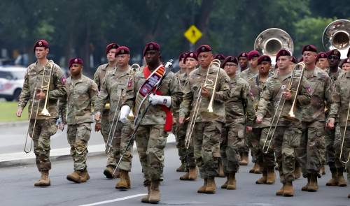 哪想到,美国陆军那些官兵们,用懒散、邋遢的队列动作和精神面貌,给特朗普上演了一场“250分列式”,简直跟游击队的水平差不多。
