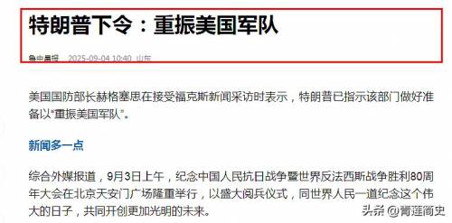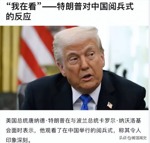 9月3日上午9点,中国的大阅兵开始,美国正好是9月2日的晚上9点钟。特朗普在白宫通过网络视频全程观看了中国的大阅兵,他对大阅兵的感受是“印象深刻”。在观看结束之后,特朗普下达了一个命令:重振美国军队。
