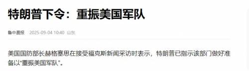 另一方面,按照美国防长赫格塞思的说法,特朗普以三军统帅的身份,已经下了一道针对全体美军的命令,同时指示美防长及其领导的国防部,做好准备,对美军进行历史性的重建,实现美军的复兴,重建美国军事实力的威慑力。