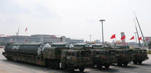 但这次阅兵中,中国展示东风-5C、东风-61等多型战略核导弹。