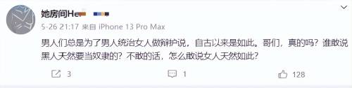 除此之外,她还提出了“男子总是统治女子”,这让看她帖子的人打眼一看,是在为女性说话,但是这话根本经不起推敲。