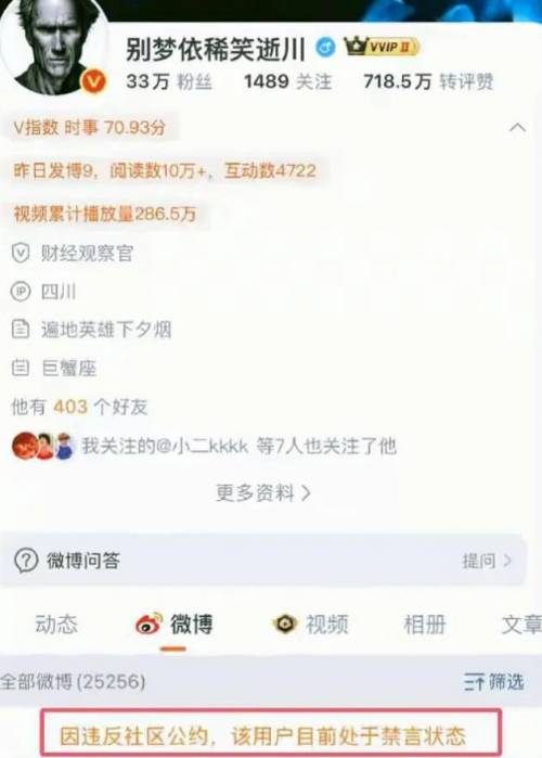 就连平台也直接禁言了这位大V,处理的相当干净利落。