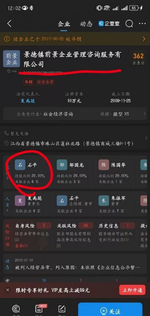 除房产外,石平在景德镇也有一家关联公司,这家公司肯定给他赚了不少钱,只不过在2017年吊销了营业执照,这些钱全是石平靠反华赚来的“黑心钱”。