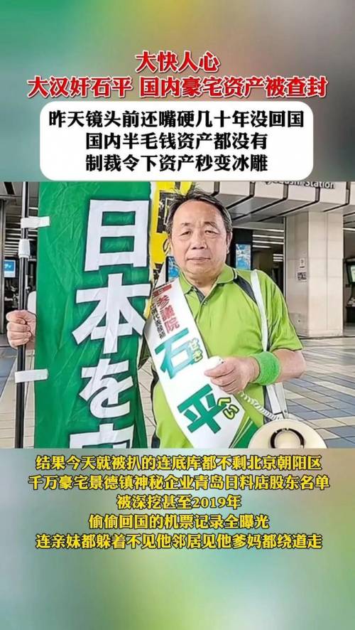 那效率可不是一般的高,很快就将二鬼子石平太郎在国内的亿万资产给扒了出来,北京千万房产、景德镇公司、青岛日料店旧业……石平所谓的“毫无牵挂”说法不攻自破。