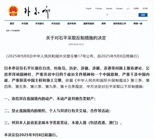 从一开始的“感到无所谓”再到后来“提出抗议”,看得出来,他是真的急了,外交部宣布冻结石平在中国境内的动产、不动产及其他各类财产。