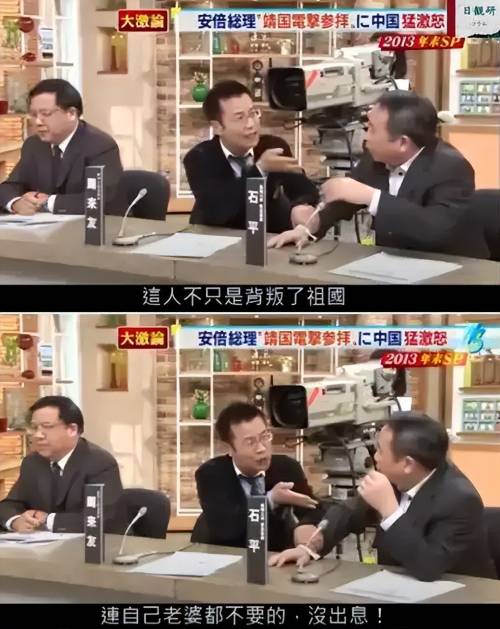 早在2013年,石平就在一档节目上受到了另一边一位日本人的抨击,他说石平不只背叛了祖国,连自己老婆都不要,真是没出息!