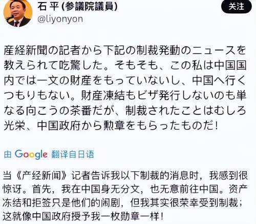 明眼人都能看出来,石平太郎是真的急了,这番言论无疑是在试图淡化制裁带来的影响,但他忽视了互联网力量有多强大,在外交部的制裁令刚下达时,网友们就开始行动起来。