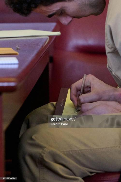 路易吉在庭审时认真的记笔记,他弯着身子,认真的书写。路易吉写笔记的这一幕还挺让人心疼啊,他那样年轻,如果不是因为开那一枪,现在他应该活得很自在。但是他选择了心中的“正义”,这是他为此付出的代价。