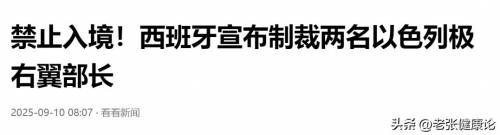 9月9日也就是以色列袭击卡塔尔的这一天,西班牙更是对外宣布,制裁以色列国家安全部长本-格维尔和财政部长斯莫特里赫,禁止这两人以任何理由进入西班牙境内。