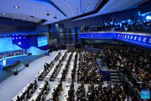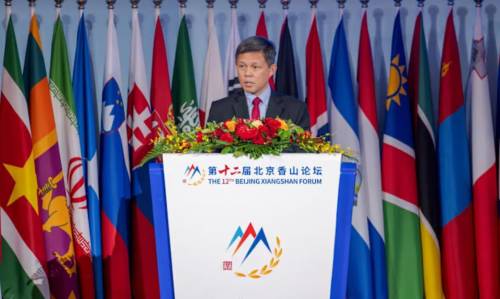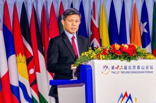 9月18日,香山论坛举行第二次全体会议,新加坡防长陈振声发表演讲。