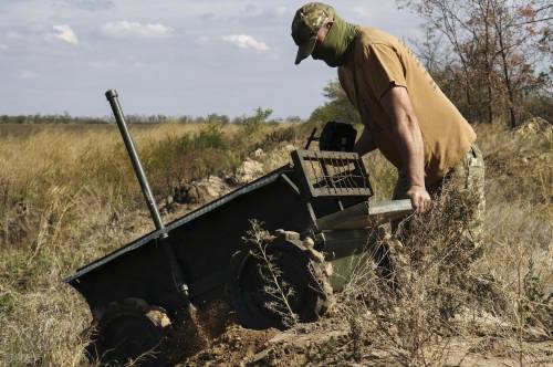 图| 当地时间2025年9月19日,扎波罗热地区,乌克兰武装部队第65独立机械化旅的工兵测试地面机器人系统