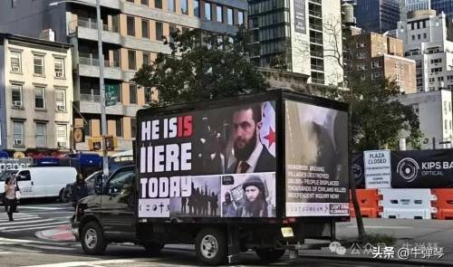 所以,这次,在纽约街头,据说一些叙利亚人租用了20多辆流动广告车,上面贴着大幅的标语:这个“伊斯兰国”恐怖分子,今天来到了纽约。