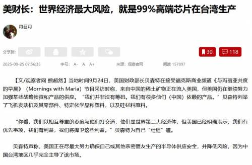 以前在美国看起来好像是可控的,但是当下的美国发现,就连美国都变的不可控了,更何况是别的国家呢?同时贝森特更是认识到,当下世界最大的经济风险不在美国也不在中国大陆,而在台湾。