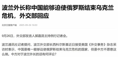 不过,波兰也太小看中国了,我外交部直接反将一军,戳穿了波兰的老底,表示不希望战争结束拱火浇油的另有其人,呼吁欧洲在政治解决乌克兰危机上发挥更大作用,这其实就是在点欧盟,他们才是罪魁祸首,等于不再给欧洲留面子了。