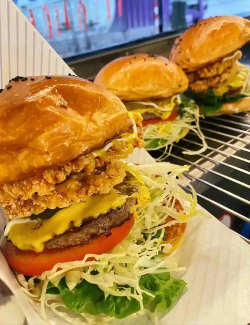 后来有人往牛排上下加了面包,就成了现在的汉堡。