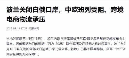 9月12日,波兰政府突然宣布,因俄白“西方-2025”联合军演和无人机越境事件,将关闭所有与白俄罗斯的边境口岸。