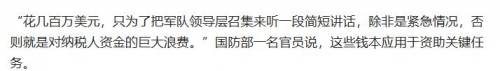 美国国防部一名官员表示,“花几百万美元,只为了把军队领导层召集来听一段简短讲话,除非是紧急情况,否则就是对纳税人资金的巨大浪费”。