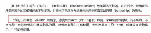 很离谱,特朗普在演讲中提出恢复战列舰项目。