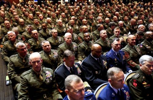 现场显示,台下的军方高层几乎全程沉默听完了两人的讲话。有分析认为,这种反应符合美国军方“无党派”的准则。也有分析指出,这种明显让军事领导人陷入党派闹剧的做法非常可耻。