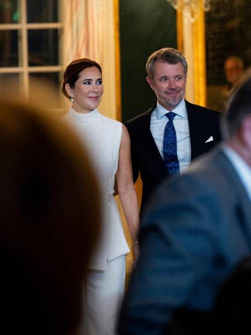 虽然是晚宴,但现年53岁的玛丽并没有佩戴王冠,不仅如此,她甚至都没有选择晚礼裙,而是穿了白色的裤装,就如同参加商务会谈一般,不过倒是一如既往的大气优雅。