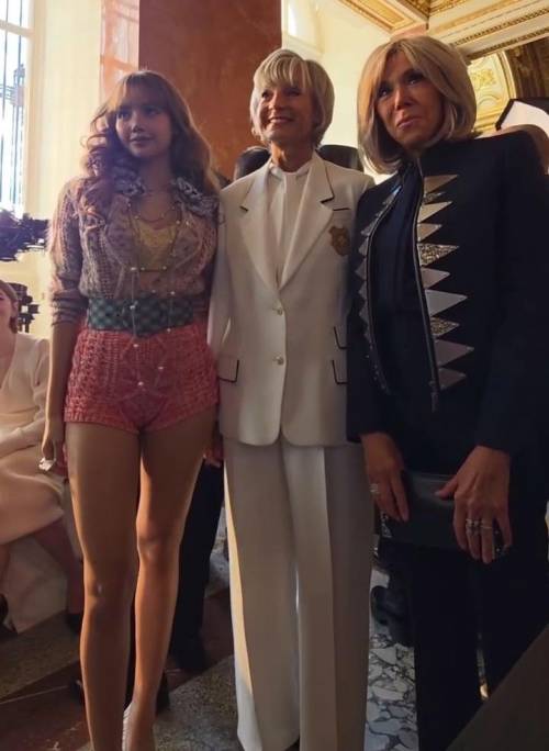 而在此前一天,布里吉特观看了路易·威登的新品秀,和LVMH集团总裁夫人海伦·梅谢尔以及韩国女团BLACKpINK的Lisa同框。