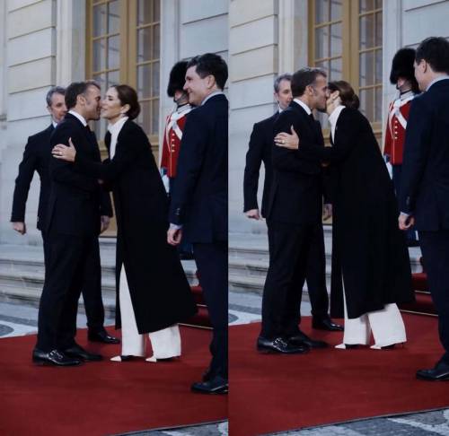 虽然马克龙很愿意向女士献上点到为止的“吻手礼”,但当天他却选择了用亲吻脸颊的方式来跟玛丽寒暄。两个人颇为礼貌地亲吻了彼此的脸颊,显得很是和睦。