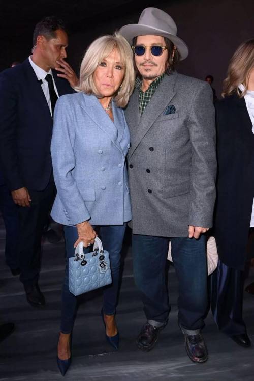 就在马克龙跟玛丽王后亲密交流的时候,布里吉特正在迪奥秀场,跟“杰克船长”约翰尼·德普“勾肩搭背”地同框,就如同好友久别重逢一般。