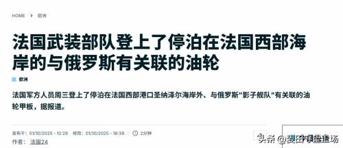 对于法国海军为首,北约军事力量首次扣押俄罗斯油轮,法国总统马克龙称:“法国海岸外的一艘油轮与俄罗斯的影子油轮有关联。”法国总统马克龙表示:“俄罗斯油轮犯下了“非常严重的错误行为”。马克龙表示,这艘俄罗斯油轮,是被法国当局“干预”而停止的,他说:“我认为这项工作已经完成,我们能够阻止它,这是件好事。”马克龙表示:“这些影子舰队”,它为俄罗斯的预算赚取了数百亿欧元,并资助了俄罗斯战争努力的大约40%。”马克龙表示,尽管有西方制裁,但仍有600到1000艘船只正在运输俄罗斯石油和天然气。