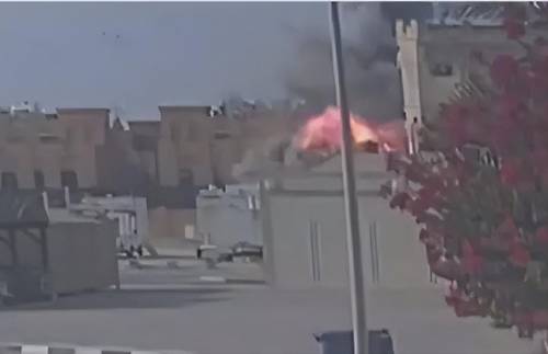 以色列对卡塔尔多哈的一栋建筑进行袭击后立即发生,火焰和滚滚黑烟