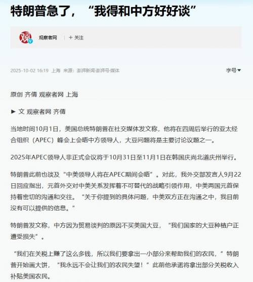 特朗普在接受采访时,情绪激动,说中国“故意不买美国大豆”,还把这个问题归咎于贸易谈判。他的意思很直接,就是认为中国在有意拖延、借此施压美国。