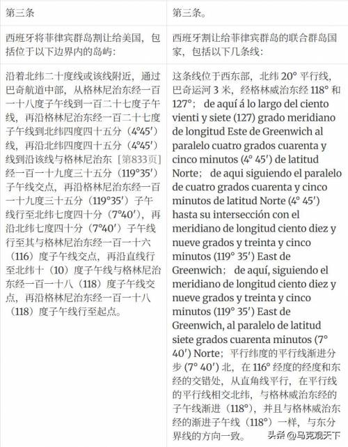 不得不说,高志凯教授以东经118度线作为依据,是非常巧妙的表述,因为该依据来源自1898《美西条约》第三条,这说明不论是西班牙政府还是美国政府,都承认该经度线以东是菲律宾殖民地领土,对经度线以西的南海地区没有领土主张,这掐断了菲方的历史依据。