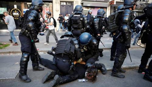 (法国抗议行动此起彼伏,防暴警察出面压制)