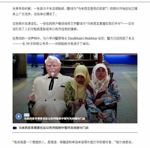 有人把这张车贴拍下来发到网上,立马就有人故意或无意的在网上发表言论,说这行字实际是“马来西亚在我们手中”,还扯到“支持以色列”上。