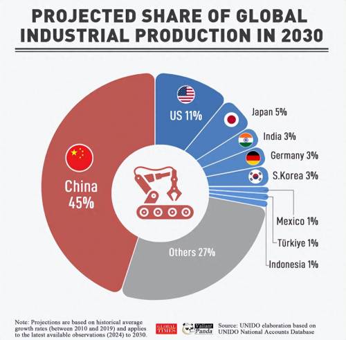 按照联合国预测数据,2030年,中国制造业将占据全球45%的份额。