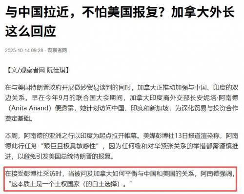 在真金白银的国家利益面前,任何外部压力和政治口号都显得特别苍白。加拿大从被迫跟跑到主动求和的转变,就是最现实的例子。