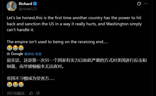 中国现在管制稀土就是争取时间,美国现在制裁中国半导体不也是争取时间么!双方都在拖住对方,看谁先突破了!但作为全球最强大的美国,只有美国限制他国却从没有他国限制过美国。X上有网友嘲笑美国: