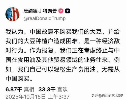 不过,这不是最尴尬的,最尴尬的是,中国的食用油,仅 2 万吨出口到美国,美国主要竞购的是中方的地沟油用来制作生物燃料,所以不采购咱们的地沟油,美方的生物燃料制造公司就会增加燃料成本而已,每一次警告总是完美的打在自己的身上。这在美国历任总统中也是很少见的。