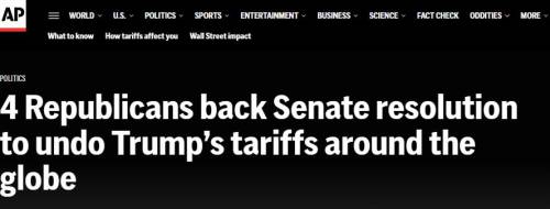 【四名共和党人支持参议院决议,撤销特朗普在全球范围内征收的关税】